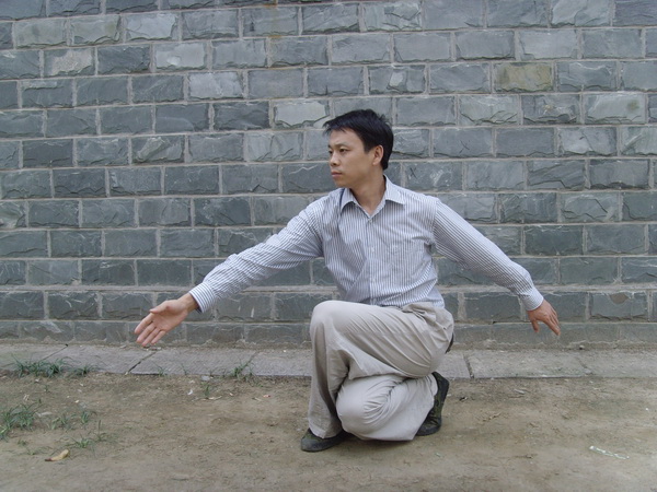 教小孩子,虽然很累,但对我也是有益的。可以磨磨我的性子,人就要把自己磨的一点脾气都没有。这一点我很敬佩我的师兄赵华,他脾气比我好多了,我常向他学习。前段时间,在发脾气的时候,常常感觉肚子右下部分,肝这里不舒服。每次只要一静下心来,思维意识总是自然的惦记着她,次数多了,时间久了。自己才发现这个情况。心想会不会出什么毛病吧!吃的下,睡得着。与其去医院听大白褂满嘴胡说,还不如多练两趟拳。工作之余坐在椅子上,呼吸间感觉后腰外撑,就跟蛇吃东西身段变大,涨皮的那种感觉。呵呵,可能又进步了。这几天看了台湾何静寒先生的“八卦导引”对自己练飞虎荡金钱也有一定的帮助,感觉自己以前练歪了,没有反复咀嚼“荡”字。每天都在练的功法,总感觉自己练的不对,又有点对。真是相当有意思。